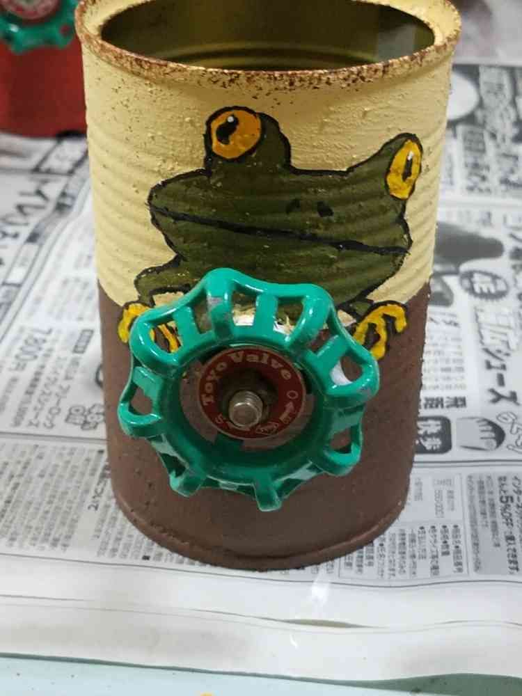 今晩は!カエル好きです!!リメ缶の絵は絵の具でかいてるんですか?ペン?何でこんなに綺麗にかけるの??凄いです!