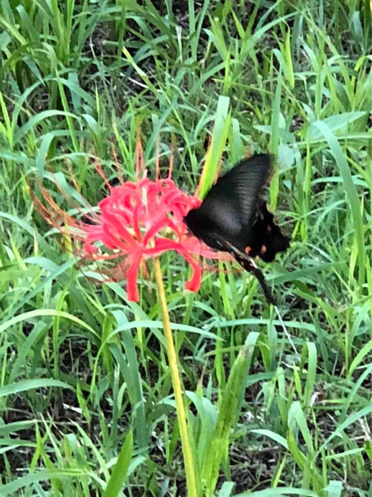 赤い❤️➕黒🖤彼岸花とアゲハの出会い💠