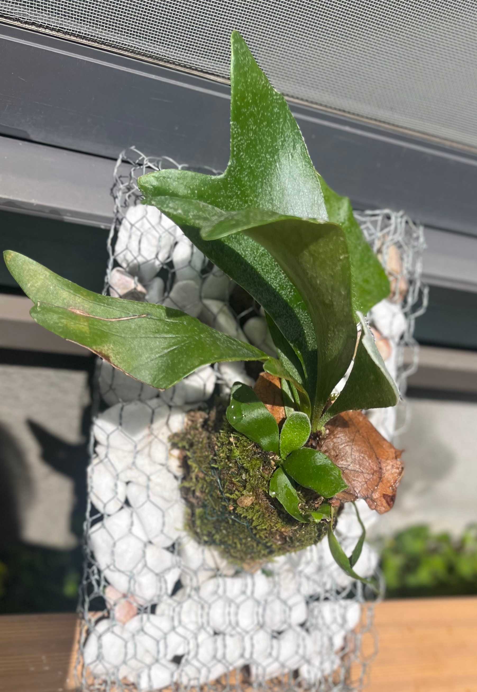 苔玉についてるコウモリランをいつか板付けするつもりが、ネットで見た金網付けに興味を惹かれ、作ってみることにしました。