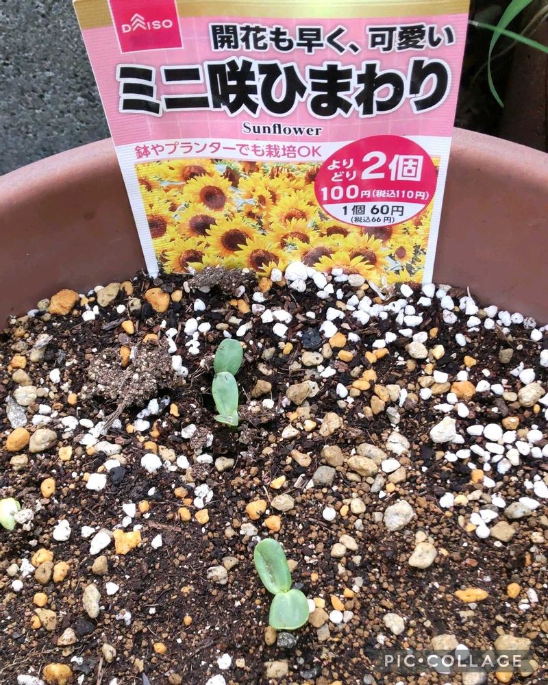 5枚目は、☆yumi☆さんに教えて頂き昨年から始めた、種からミニひまわり🌻(DAISO産)