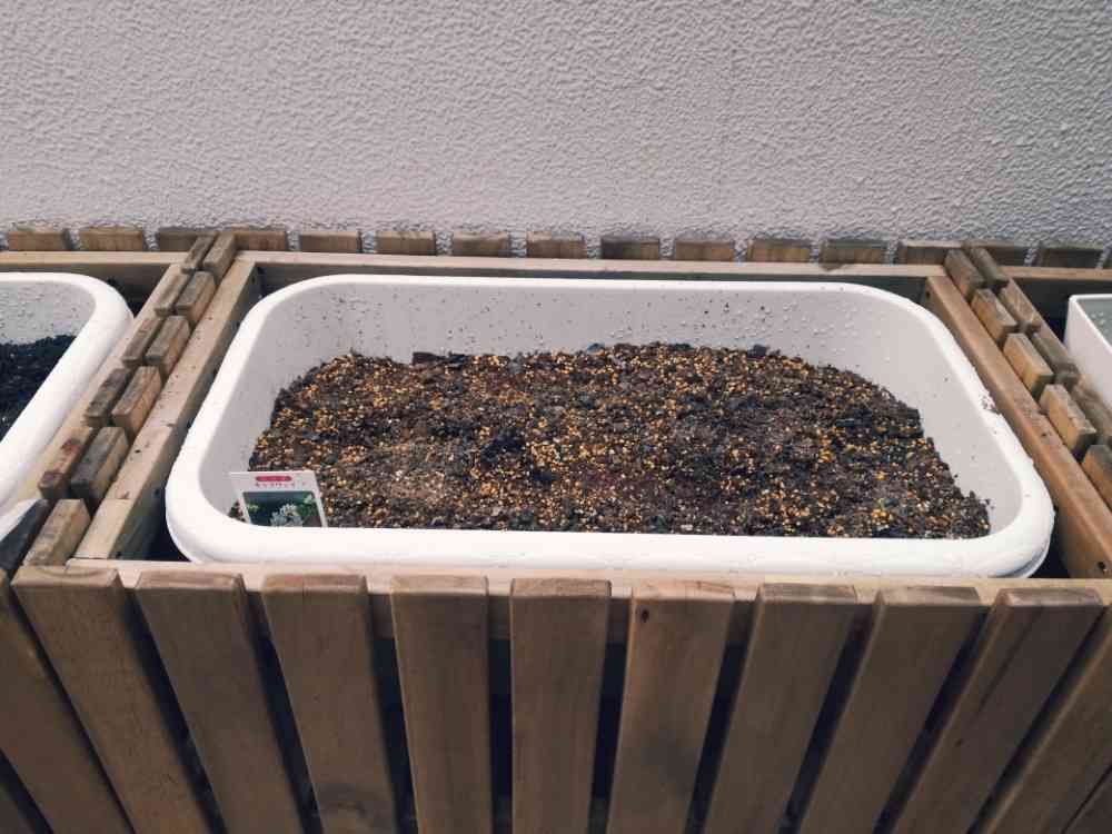 夏は苗を枯らしてしまったので、今度は季節を変えて種から挑戦。根が下に伸びるそうなので深めの野菜プランターを用意。