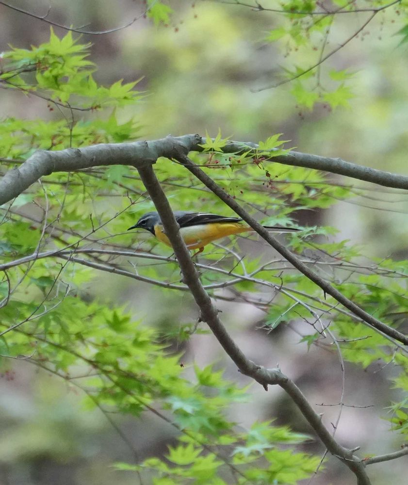 ④青紅葉の中のキセキレイ