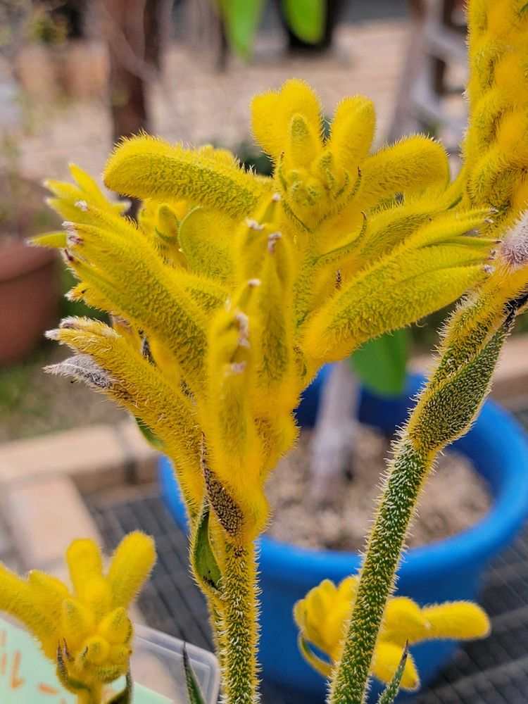 🔍👓ハエモドルム科ア二ゴザントス属の多年草です。 オーストラリア原産。 名前は花の形がカンガルーの前足(paw)に似ていることから名付けられました。 鮮やかな赤、黄、ピンク、オレンジ、緑などカラフルな色が特徴的で、花自体が起毛していて、ベルベットのような質感とユニークな形状が人気です。