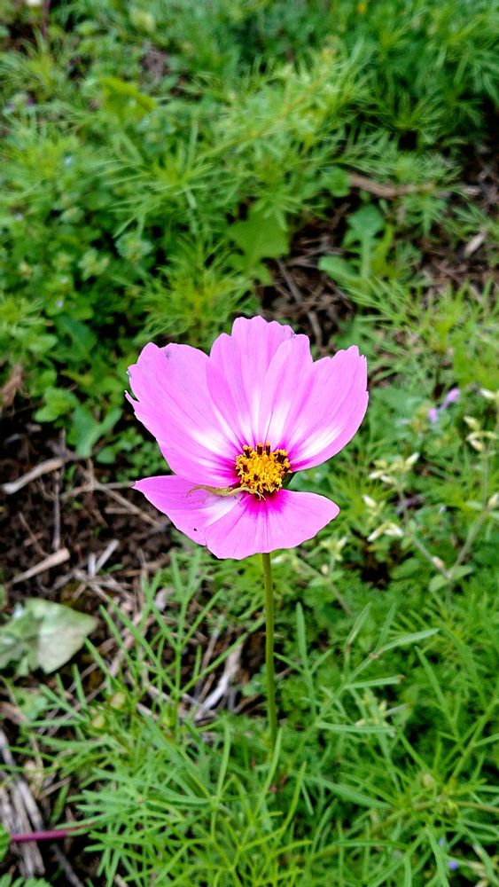 コスモスの苗が10㌢ぐらいになってて、伸びるのが早いなぁ〜と思ってたら一輪だけですが、咲いてました😅‼️