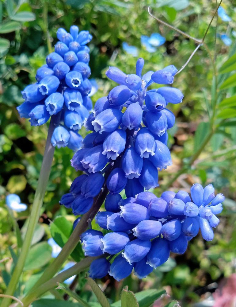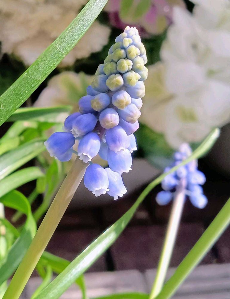 ムスカリも種類が増えて濃紺や水色や白、水色の花の先が白で縁取りされたのもありましたよ💕