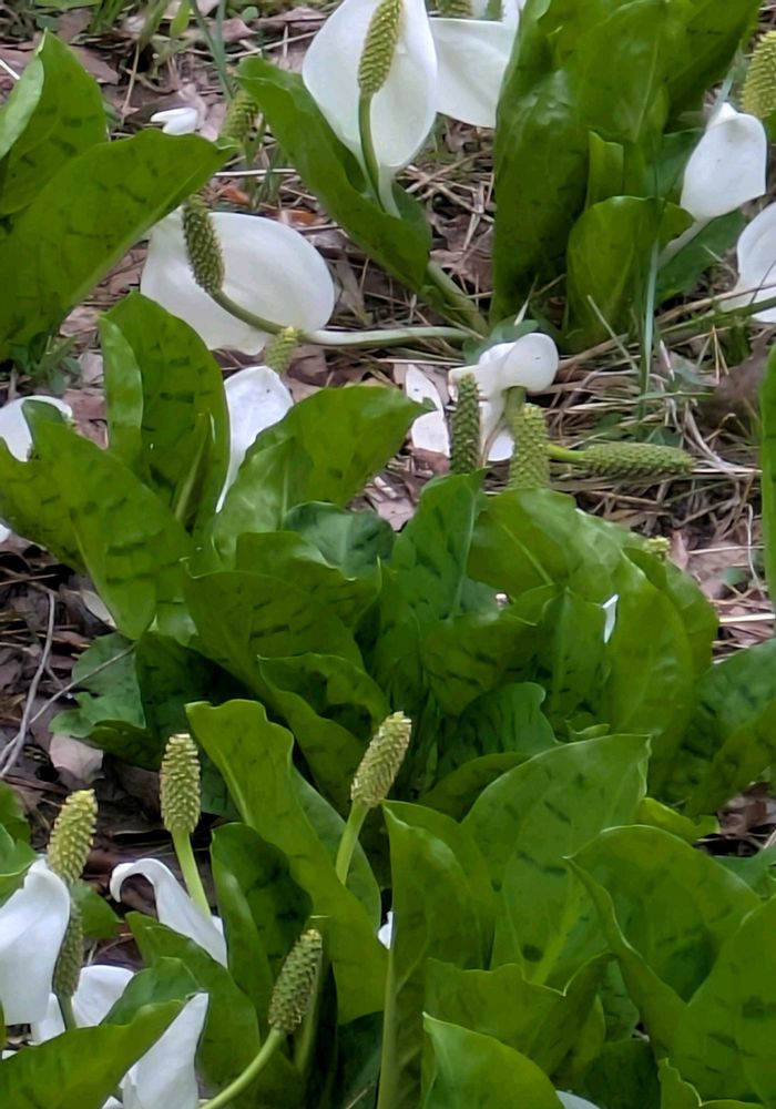 拝見したことはないが、県内の六甲高山植物園のミズバショウは山形産を移植して繁殖させているので、葉にはこのような斑が入っていないというのも興味深い🟢
