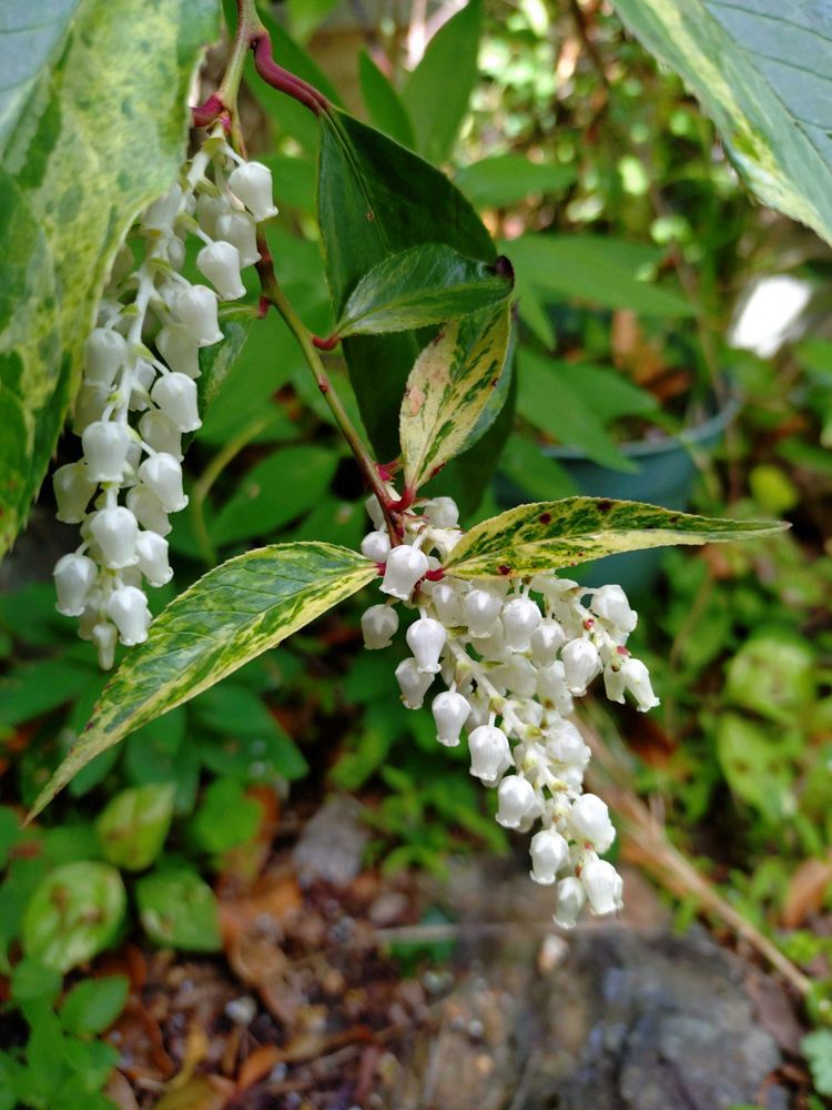 ③④斑入りセイヨウイワナンテン(アメリカイワナンテン)アセビに似た白花が今年も地味に咲いてるのを発見