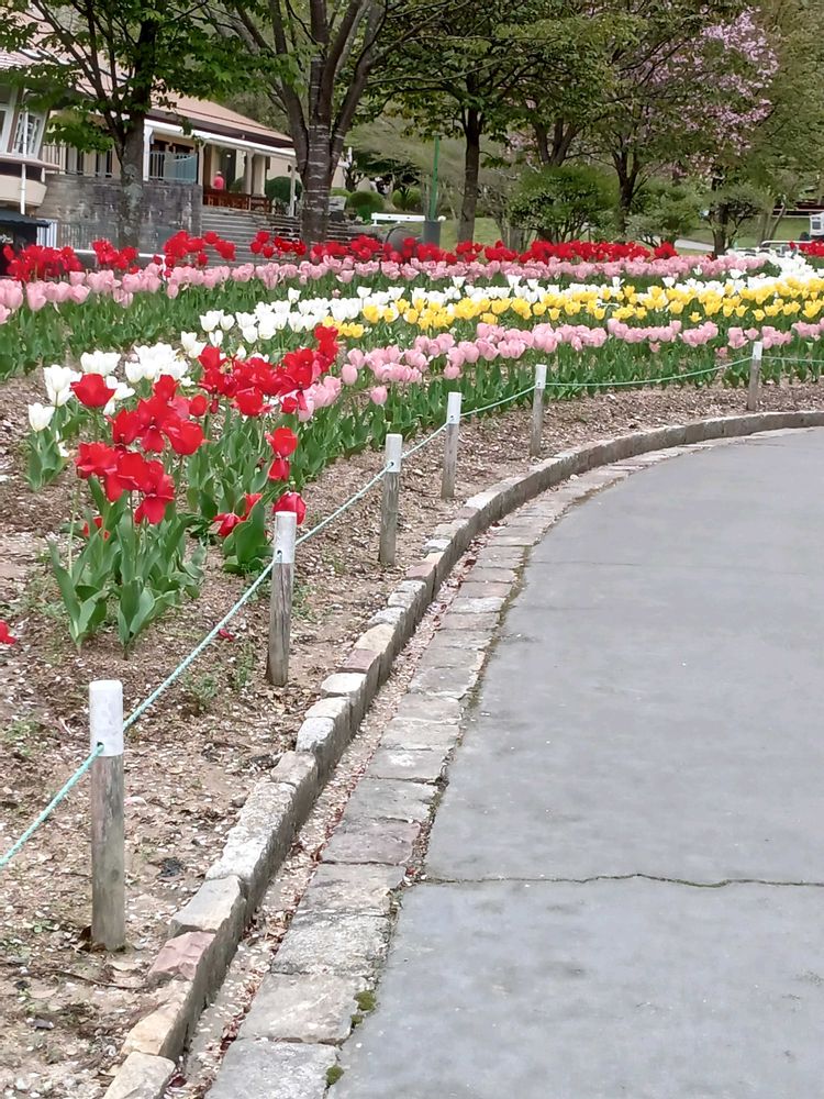 チューリップ🌷もお行儀よく並んで綺麗に咲いてました😆