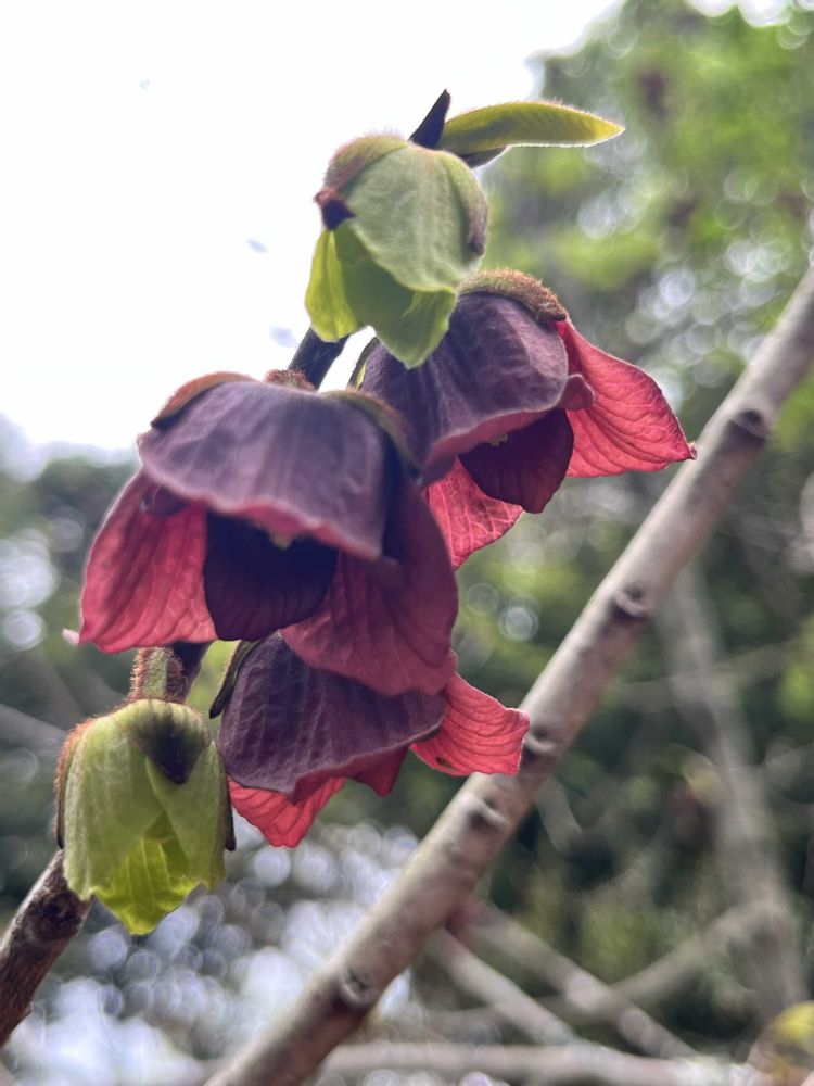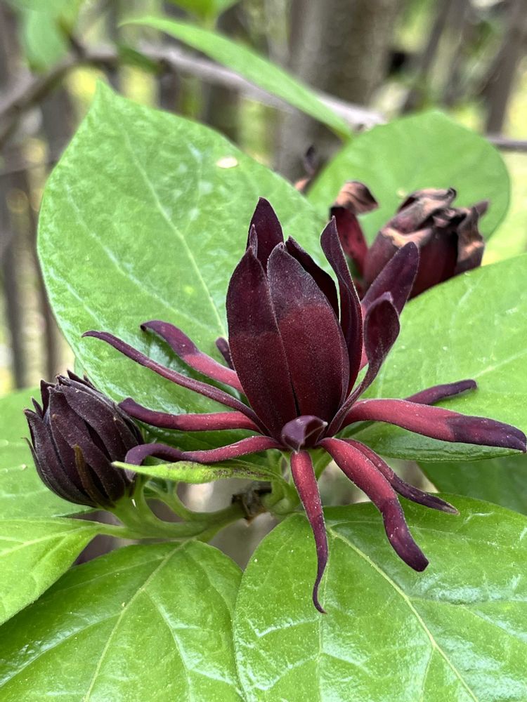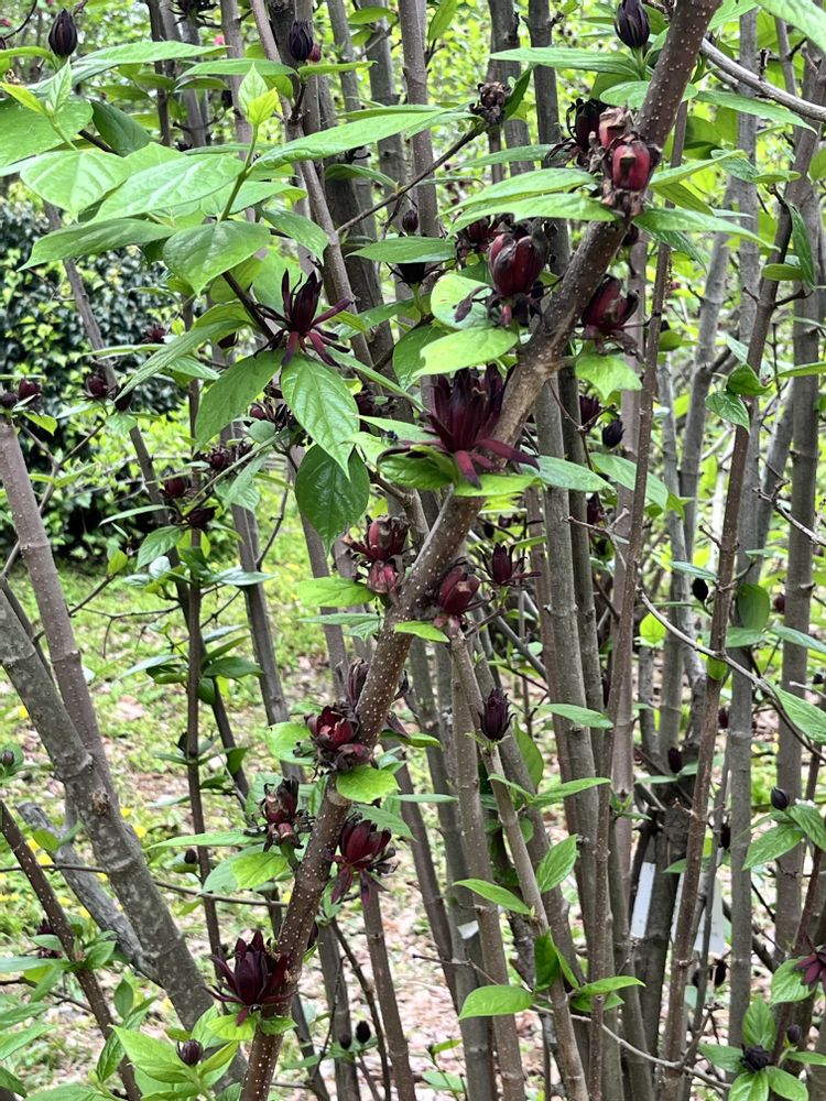 こちらで💛ロウバイが咲くのは1〜2月ですが、💜🖤クロバナロウバイは今が見頃でした😊