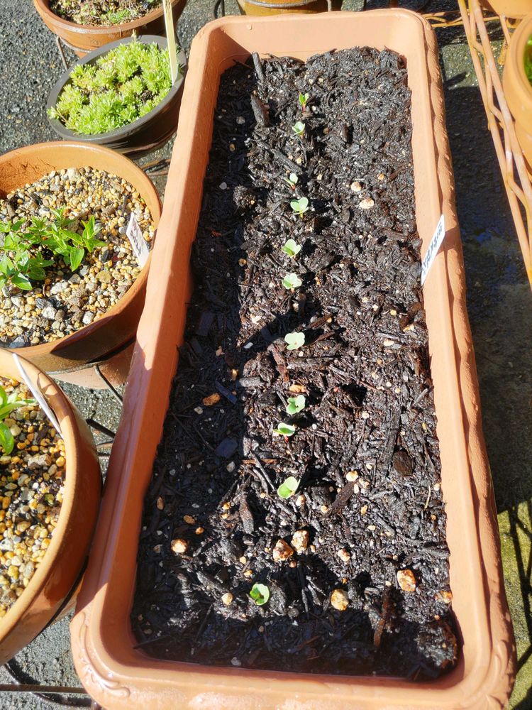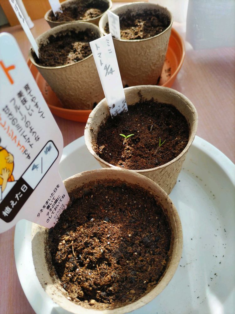 〈地道投稿〉おはようございます🌤️晴れてますが、風が冷たい駐車場7度😬1️⃣恐るべしダイソー「はつか大根・ラディッシュ」現在11/12 発芽中🤗2️⃣モスから頂いた「トマト」3/3 と1/3 (ちょい深植え)発芽中🤗3️⃣冷蔵庫保管3年目「キヌサヤ」無事に、全て発芽しました。