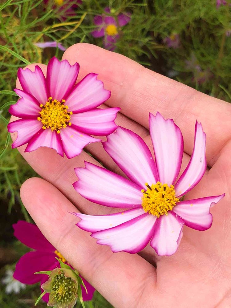 うん❤️そのコスモスはおじいちゃんが花を咲かせてるみたいなんだけど..話をしていて、後で分かったんだけど、私の父が中学校に勤務してた時父に生徒会長をして欲しいと言われそのおじいちゃんはしたと言ってたー(๑˃̵ᴗ˂̵)どこにどんな繋がりがあるか、分からないと思った❤️そのおばあちゃんは私がコスモスの花を写メしていて、面識もなく、初めての人に大量の野菜をくれた🥦何か縁を感じた❤️(//∇//)
