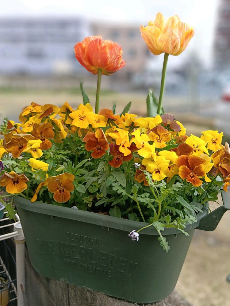 ビオラ・黄金伝説とチュ―リップとネモフィラ・ブラック