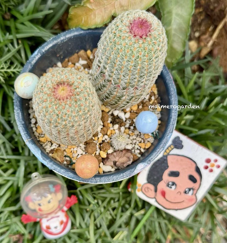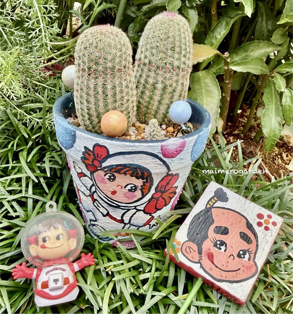 可愛い鉢に、元気いっぱいのサボテン🌵💕