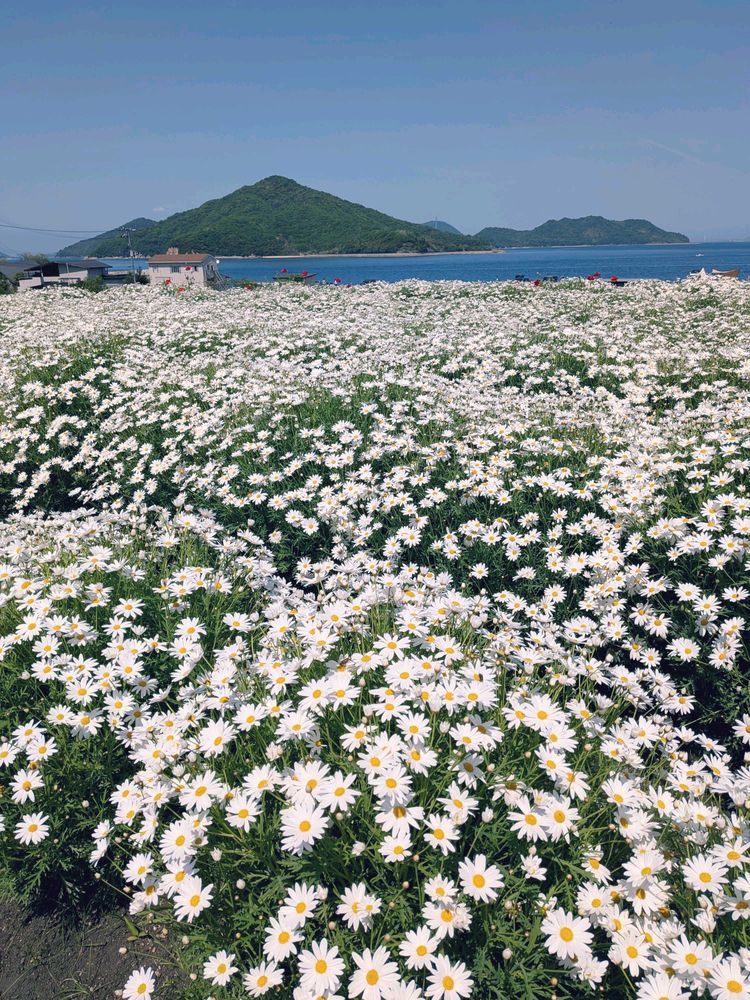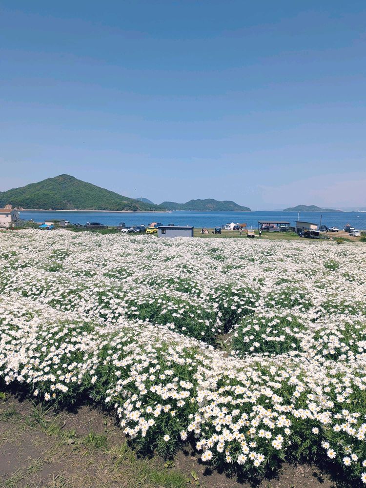 空の青と海の青とマーガレットの白。花摘み体験もできて、心が洗われました。