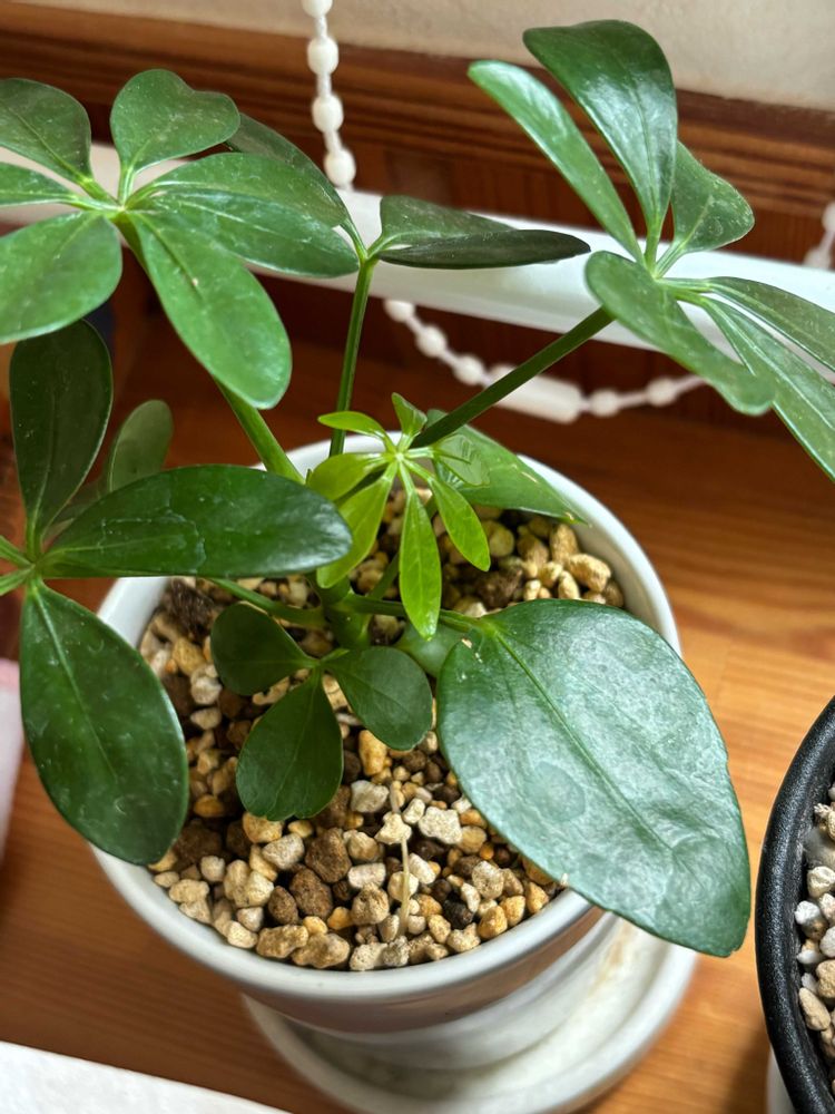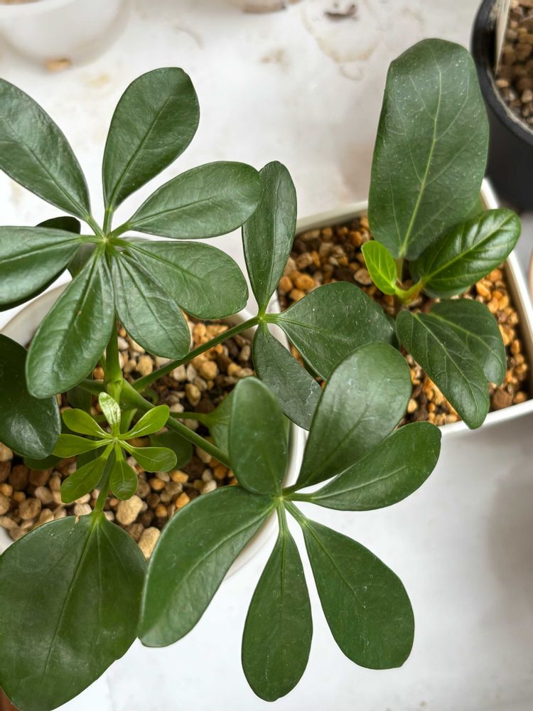 先日ポストしたダイソー産の観葉植物、カポックとベンガレンシスの新芽が揃って開きました…✨😆