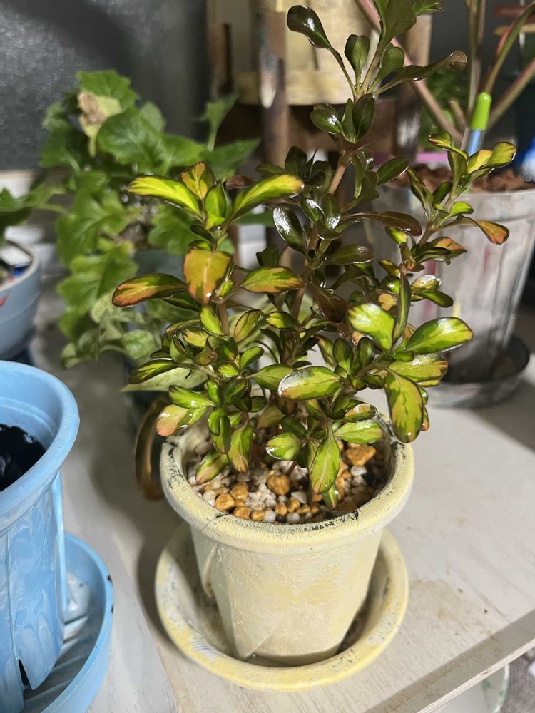 コプロスマ、ツヤツヤした小さな葉っぱと黄色黒緑赤と色がそれぞれ違うのも楽しい。