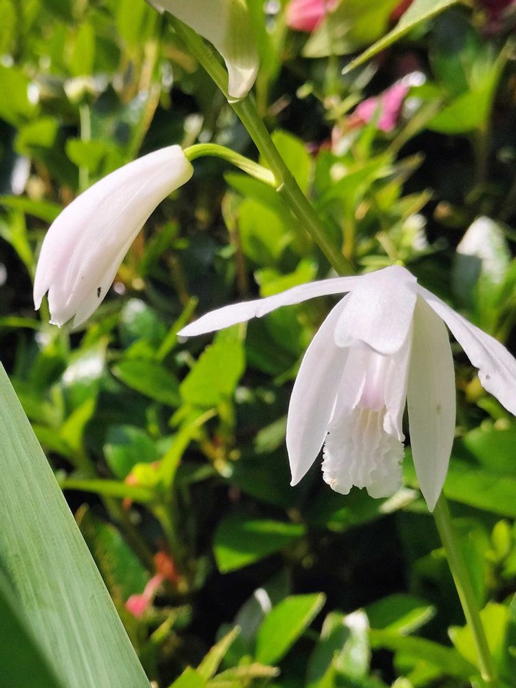 シラン、紫ではなく白いのも咲いてるのね❣️爽やかで好きです!