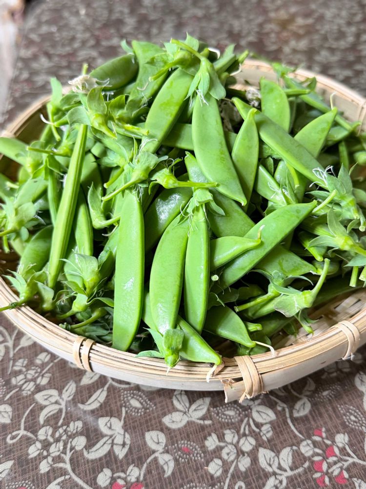野菜も良くできて🫛👍 うちはスナップエンドウのなりが今一つなので芯を留めてみました😅