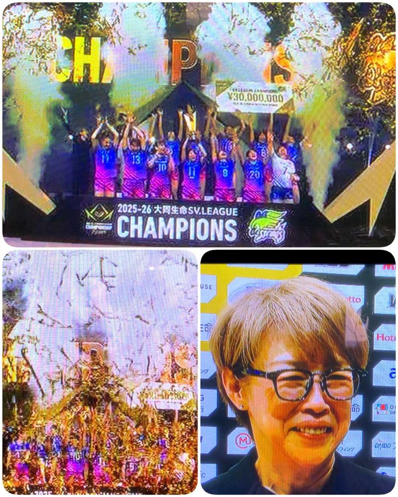 今晩は😋久光スプリングス優勝しましたね👍初優勝だったみたいですね👏👏👏監督の中田⭕も嬉しそう