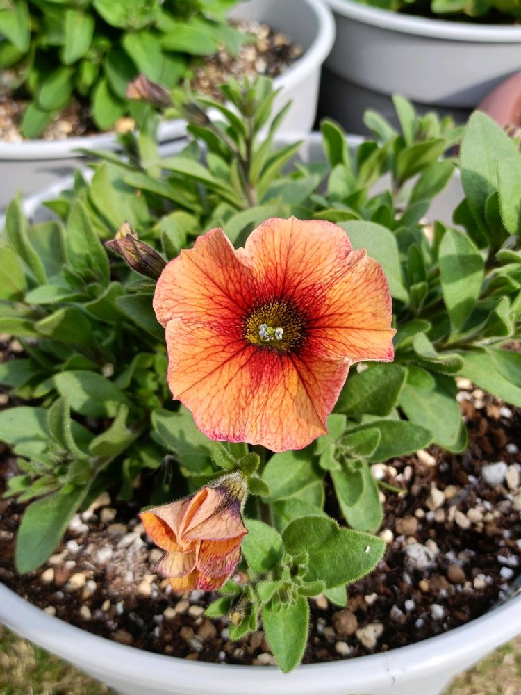 カリブラコアとペチュニアのハイブリッドとラベルにあり、どんな風に育つのか楽しみです😊