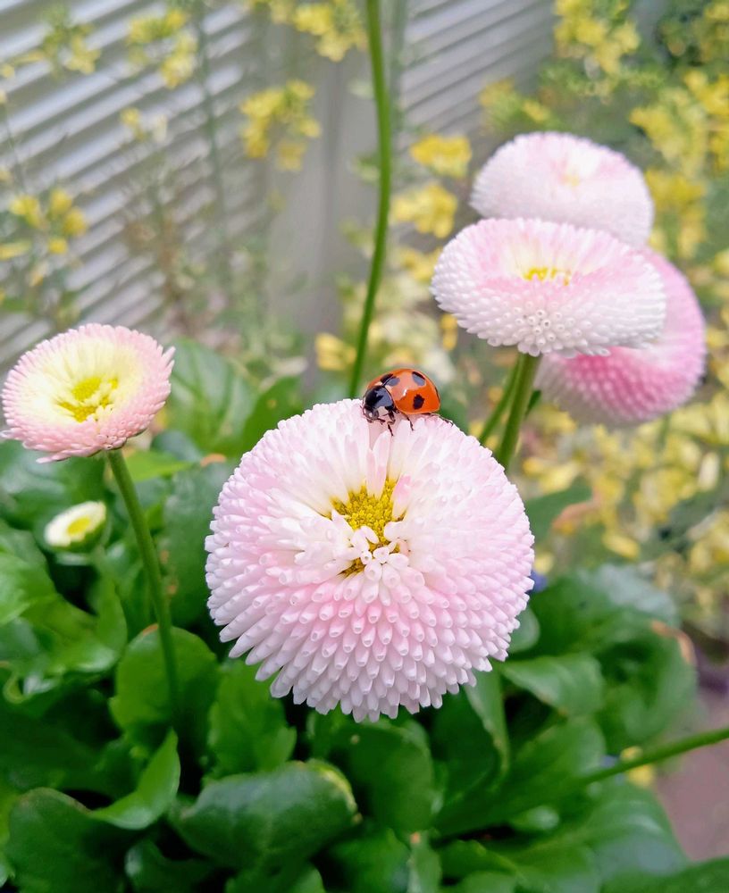 これ!凄いっ!お花とてんとう虫のコラボレーション。最高です!!!