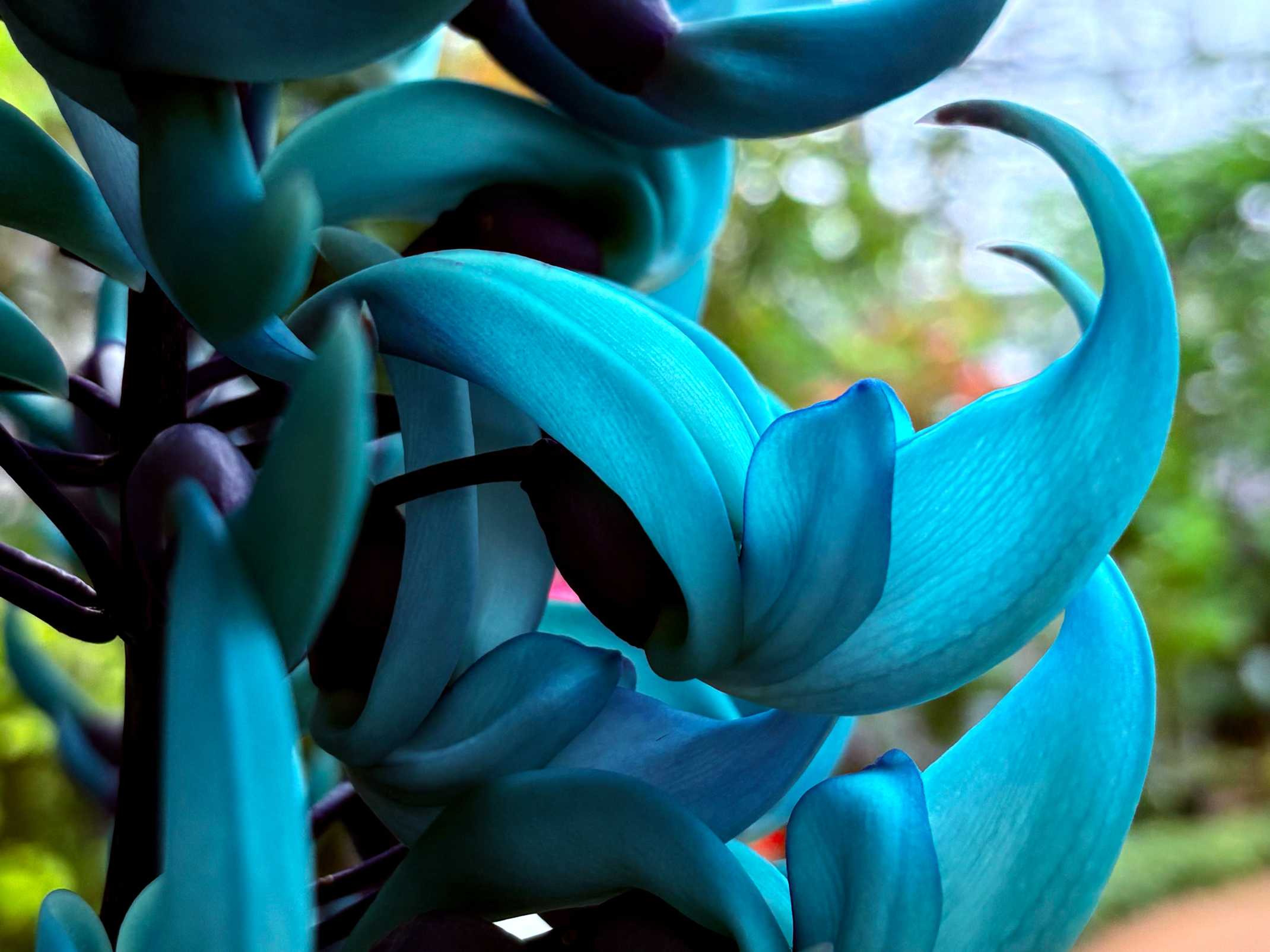 広島市植物園のヒスイカズラ 昨年は100本(モリモ推定)咲いた✨✨✨✨✨ のに のに 今年はーーーーーーーーーーーー💦 2本 えっ、えっ、えーーーーーーーーーっ💦 two pair duo double 100が2 百が二 98%減▲ 未遂カズラじゃ😭 人生も花も 思い通りには咲かないのだ‼️ スタートです▶️
