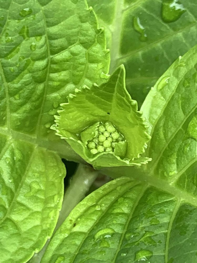 玄関先の『アジサイ』に花芽が見えて来てますd(^_^o)