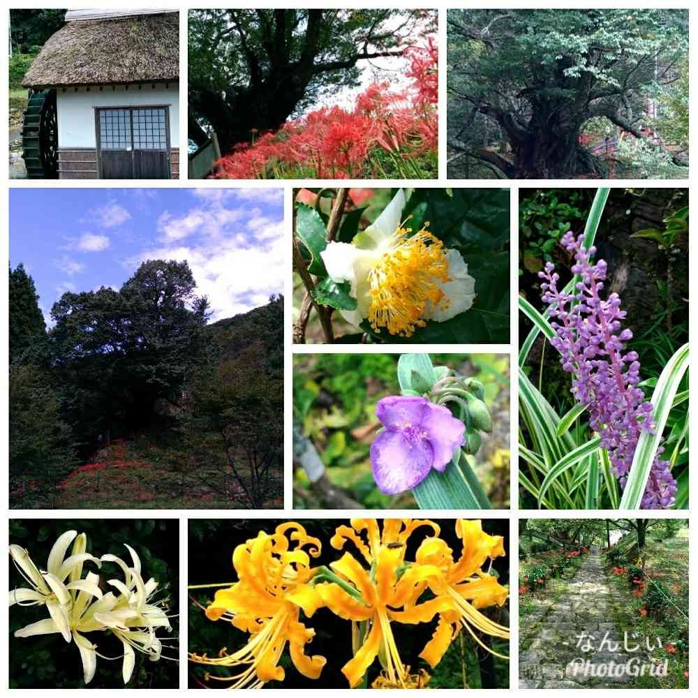 曼珠沙華(白、黃)、ムラサキツユクサ、ヤブラン、お茶の花かな❓