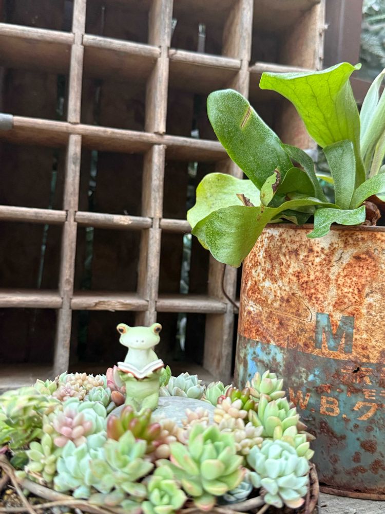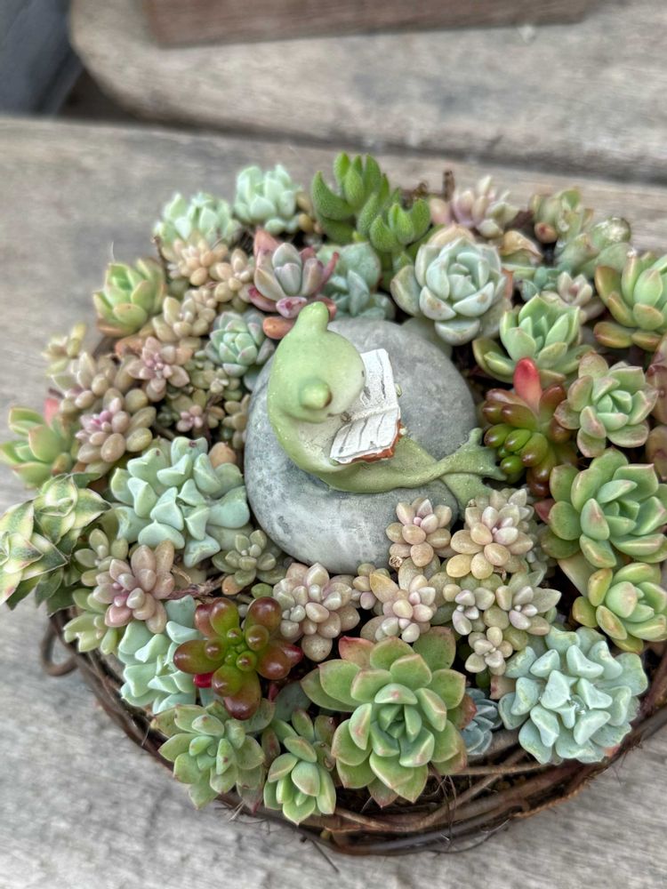 多肉のリースの真ん中にカエル置いてみました🐸
