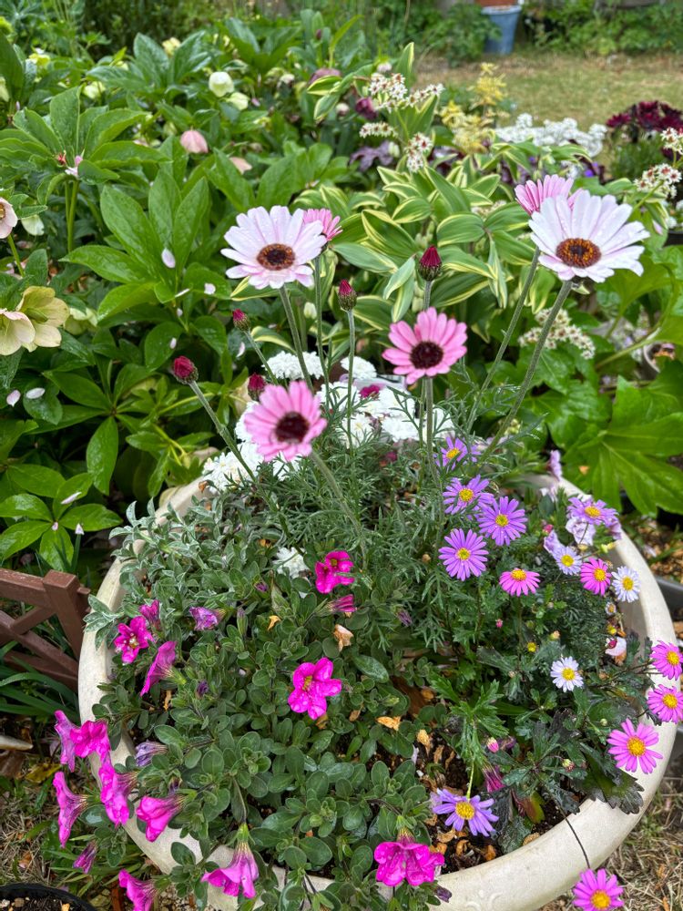 一週間前にいる作った寄せ植え💜🩷🤍🩵色々