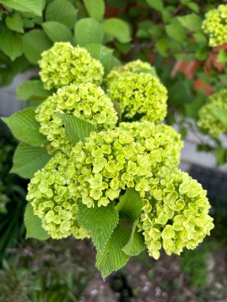 最後は、オオデマリ(大手毬)の蕾がだんだん大きく黄緑色に〜真っ白になる前のこの状態も好き❣️