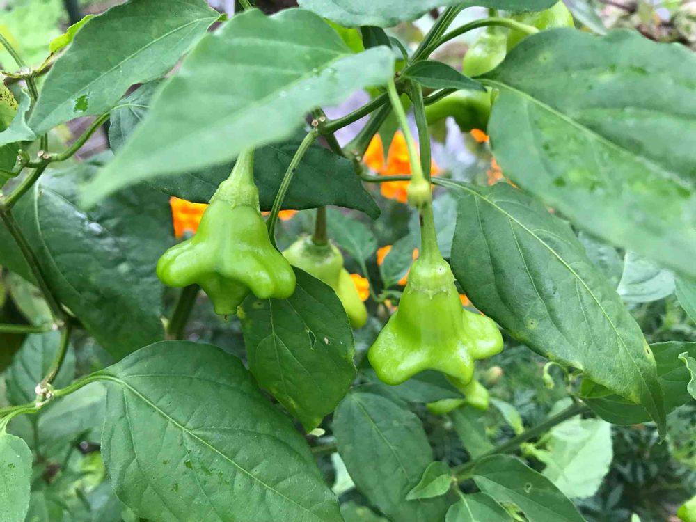 こんにちは、散歩にて朝写したものアップ忘れ😅 ピーマンの一種らしいが持ち主も名前忘れたそうで、教えて下さいよろしくお願いします、