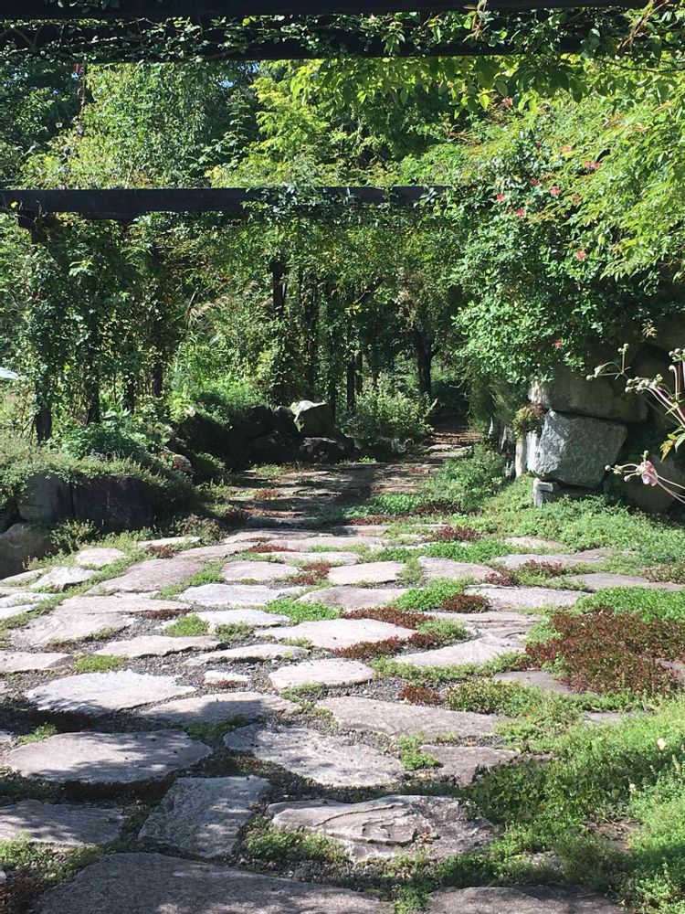 石畳の隙間に色とりどりのクローバーやセダムを植え込んでありました。
