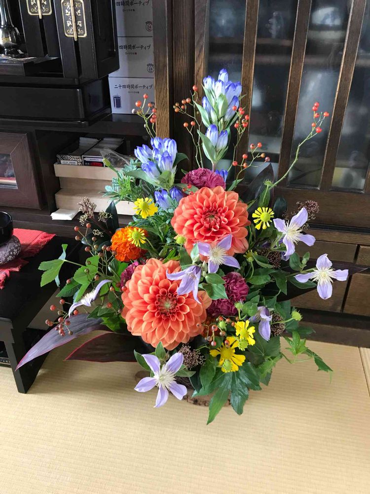 今週はお花屋さんにお供えの花を入れ替えてもらった。