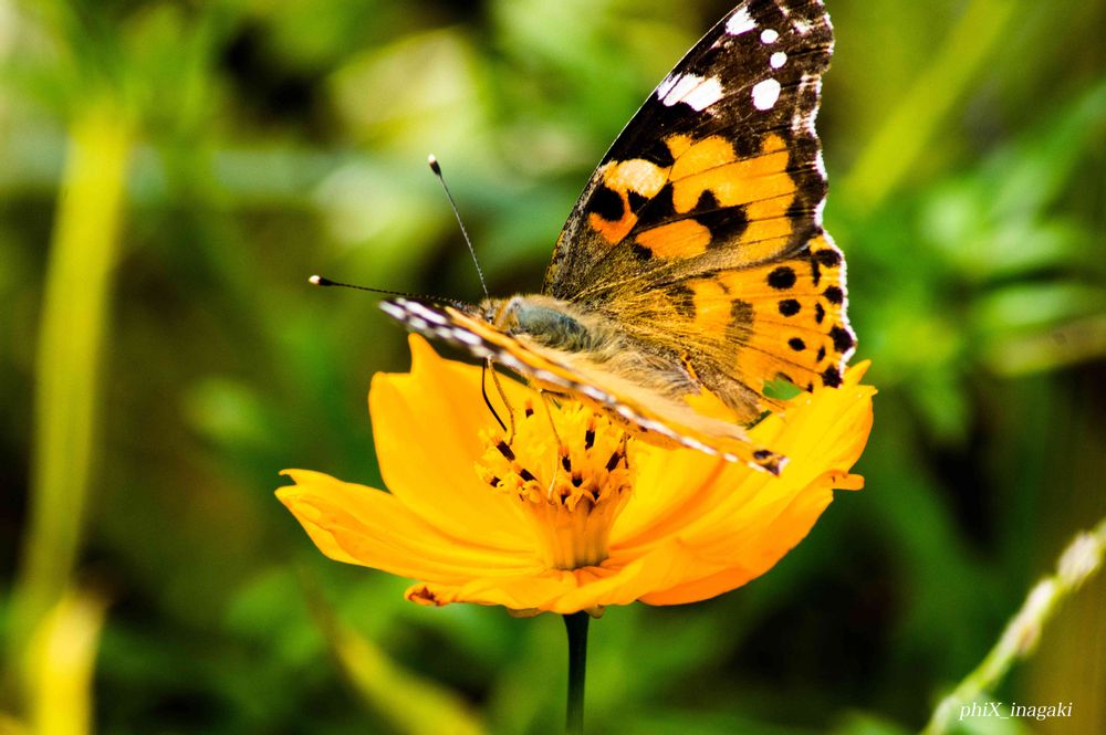 キバナコスモスを訪れたヒメアカタテハ