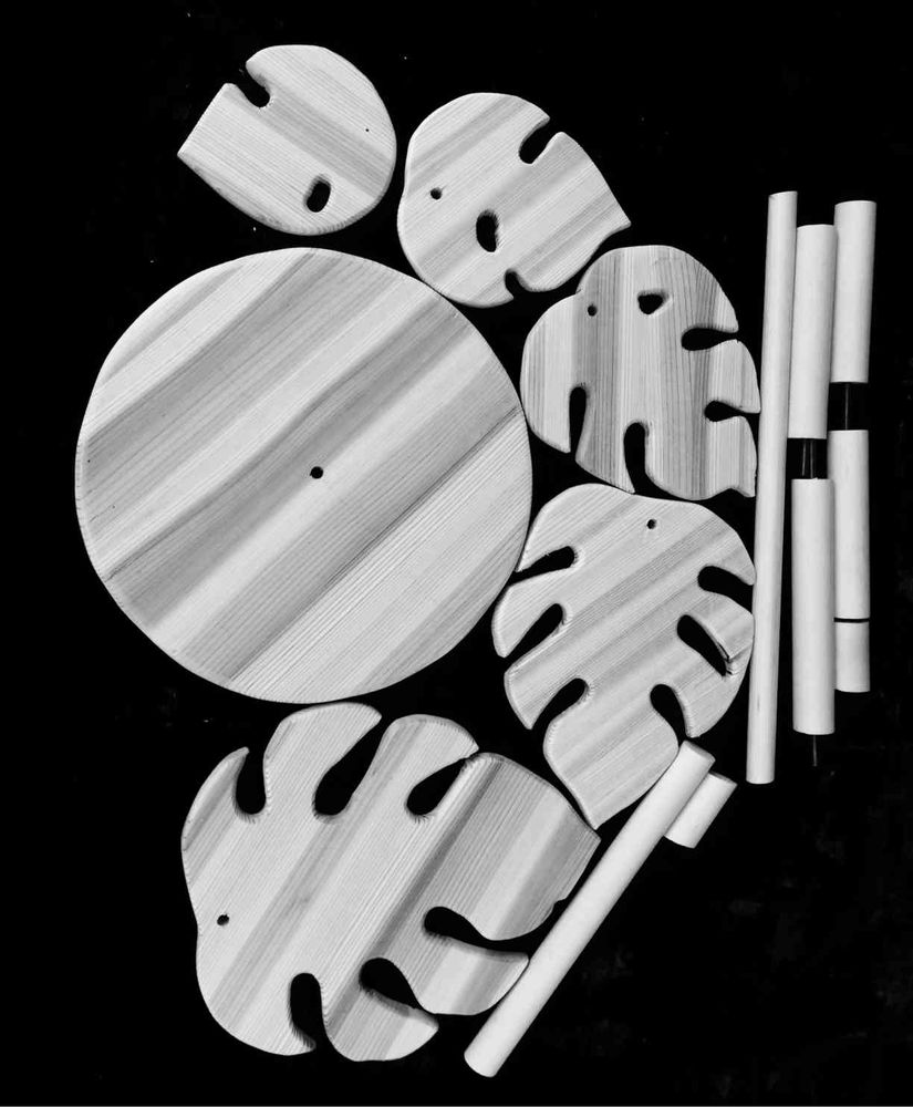 部材の加工が終わりました。後は塗装と組み立てを残すのみ。組み立ては簡単なので仮組みしてみたのですが…なんと!組んだ状態より部材のままの方が良いのです(このpicちょっとアートでしょ✨)