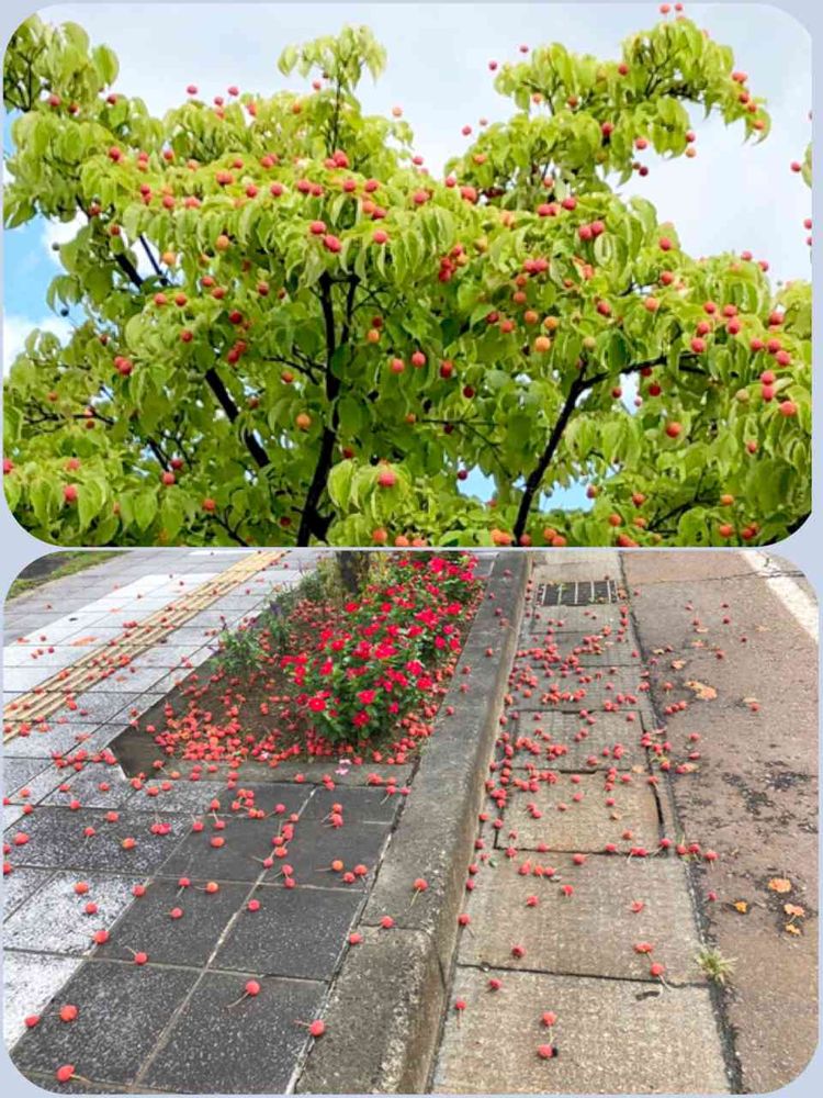 ヤマボウシの実、落下すると踏まれて凄いことになります❗️