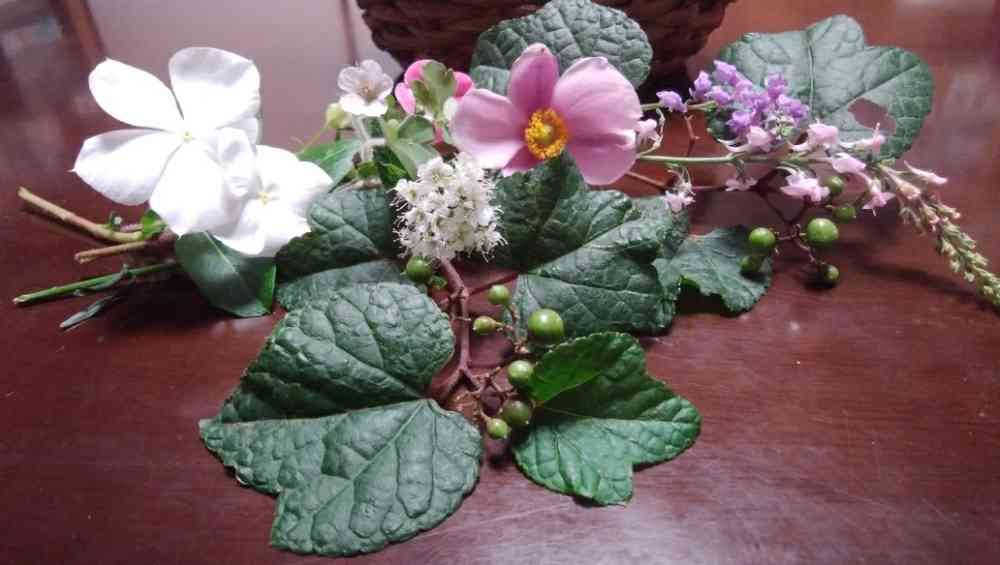 後ろの籠に(写ってないけど)、生けようと、小花を摘んだけど、まとまらず😅とりあえず、並べてみました😁
