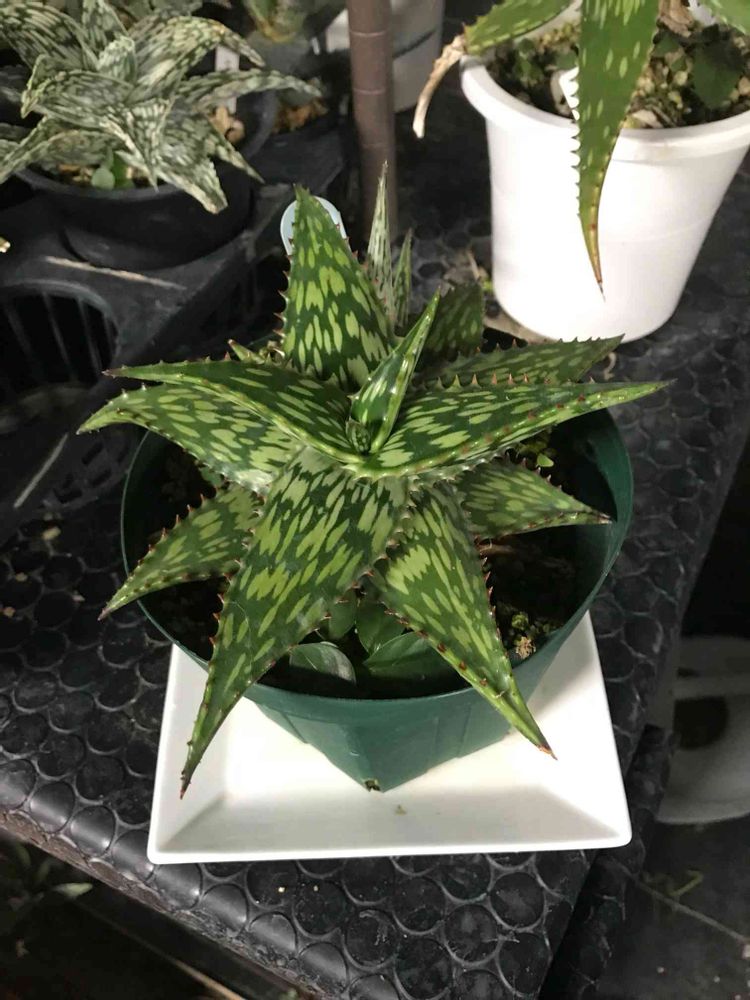 綺麗な模様で、光沢のある肉厚の葉が素晴らしく、赤い棘、葉の裏の模様も大変美しいアロエです。