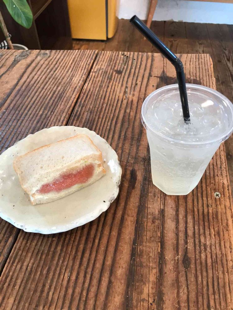 自家製酵素のレモンジュースと完熟イチジクのフルーツサンドだそうです。