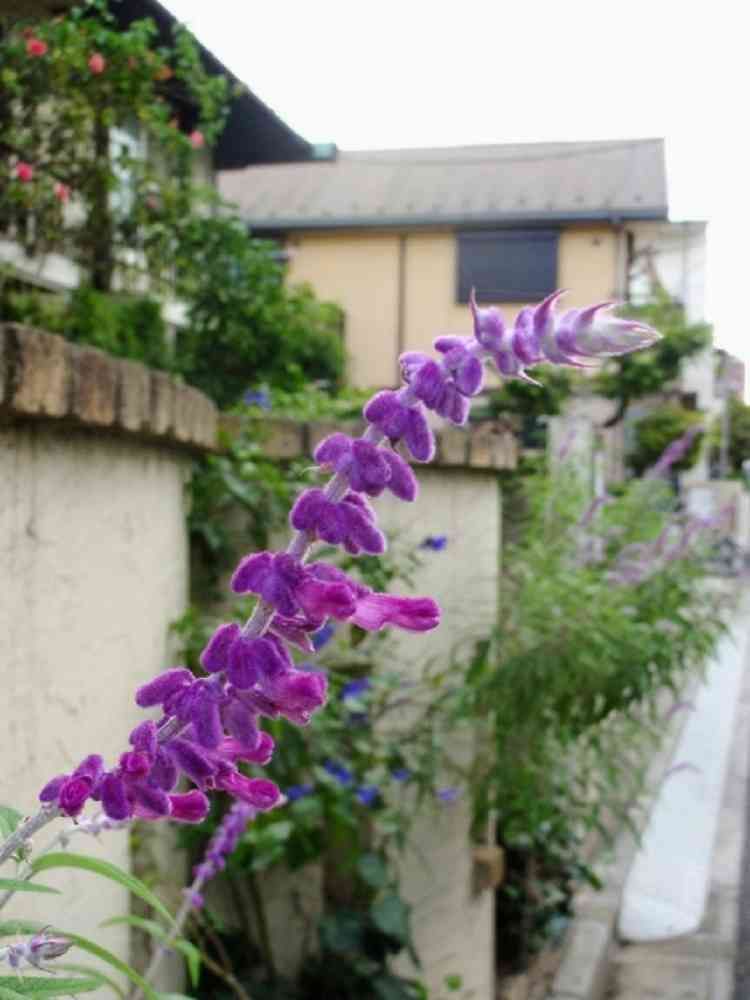 このお散歩道のアメジストセージは、日当たりがいいからなのか、毎年同じように咲いて楽しませてくれています。💜🎶