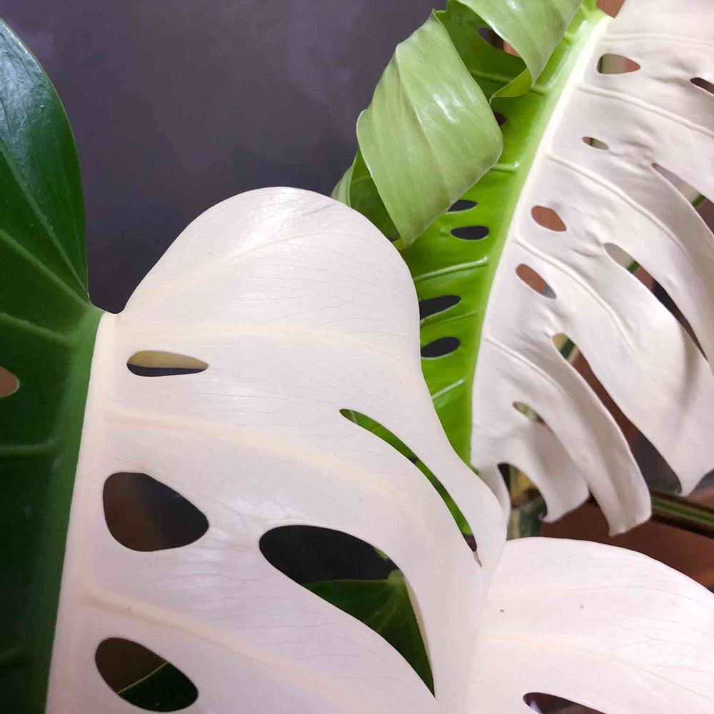 モンステラの種類にもよりますが、緑葉に戻したい時は茎の斑縞を見て緑葉がでそうな所まで切り戻すか、白葉は枯れ易いですが緑色の割合が多くなるまで伸ばし続けるか、後は肥料のチッ素量を多くすると緑葉になり易い気がしますl🌱