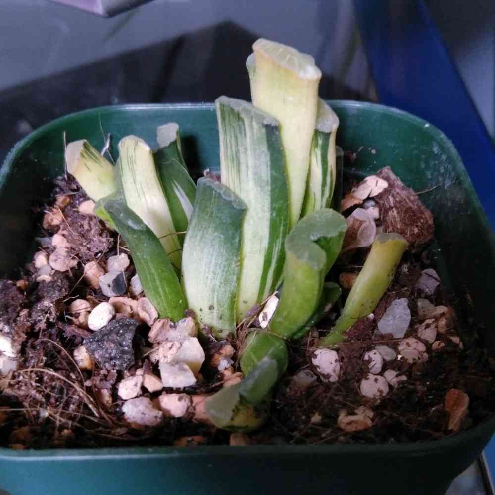 徒長確定組でまだ健在している苗です。脇芽の急激な生長も徒長によるものと思います。巌オブツーサの時みたいな感じで脇芽も急激に伸びています。土も同じ頃ので礫っぽくない^^;