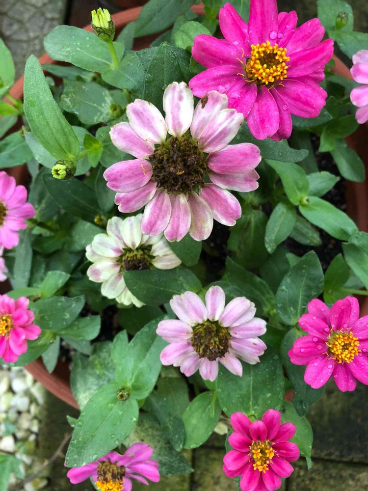 ジニアがミックスカラーで可愛いらしいお顔を覗かせてますネ😊