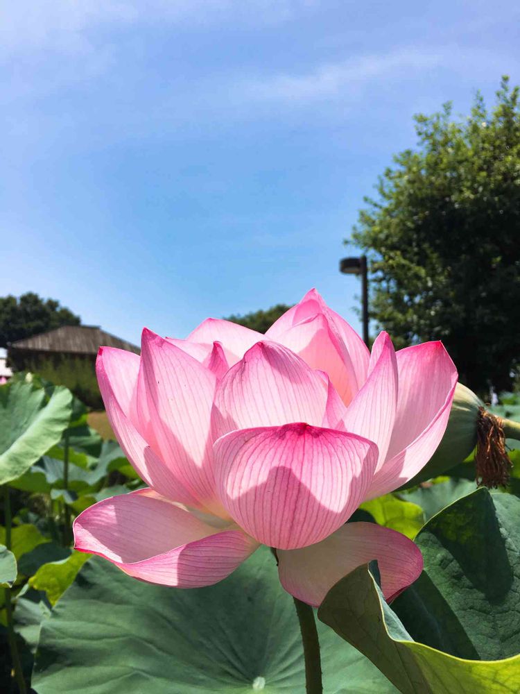 なっつさん キレイな青空☀とキレイな蓮、素敵😍です(o´∀`)b
