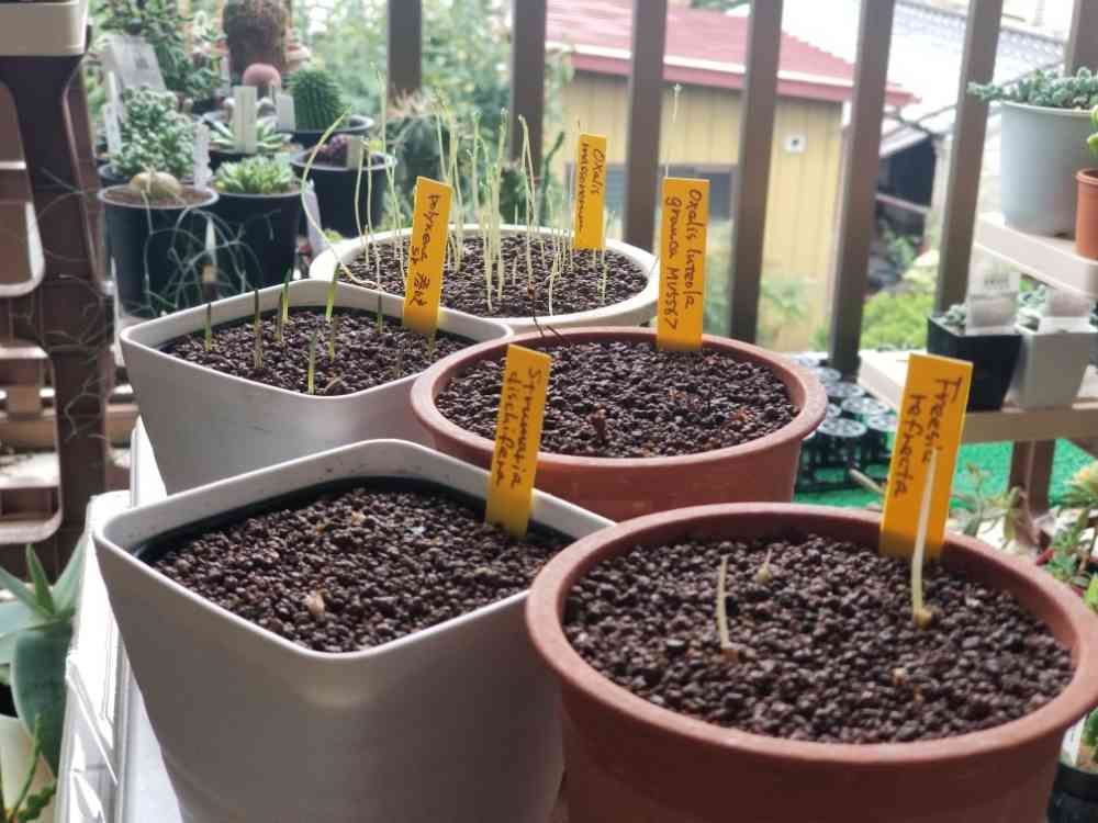 先日、園芸店の店主からいただいた❣希少種のオキザリスやフリージア等の球根から新芽🌱がニョキニョキ(•ө•)♡