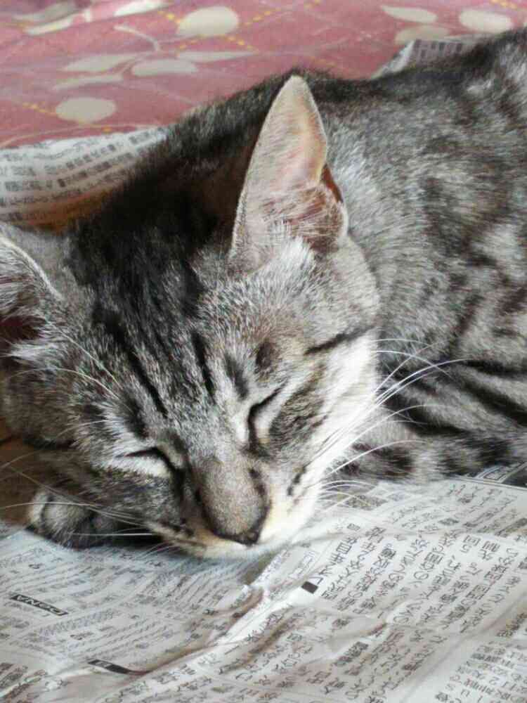 昨夜から新聞紙の上にいるよ❗