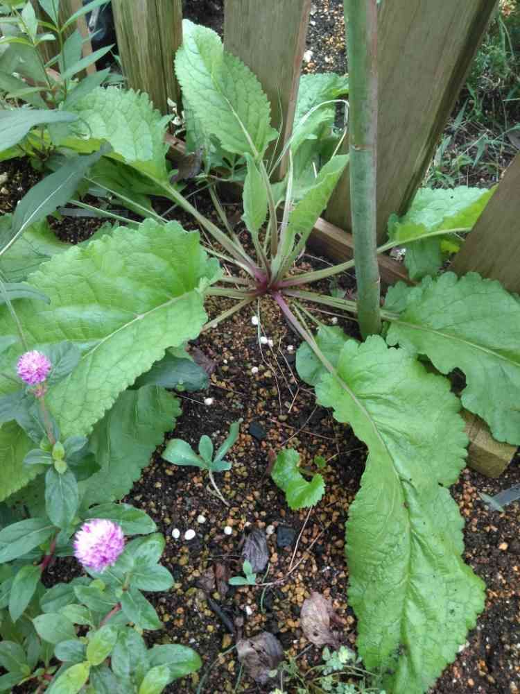 こぼれ種で育っているだろう苗さん♡葉の色や手触り、すこし毛があってふかふかで、ジキタリスさんかな?と思います(^^ゞ