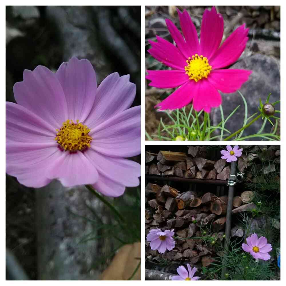 薪棚の前に突然咲きだしたコスモスの花🌼