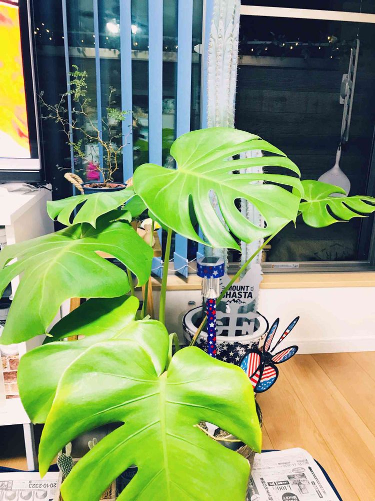 部屋に置いてたら狭くなっちゃうので、ベランダに出していたモンステラ❤︎